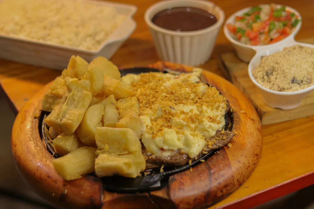 Porções para 2 Pessoas: Acompanha Arroz Branco, Feijão Preto, Batata Frita e Salada Verde
