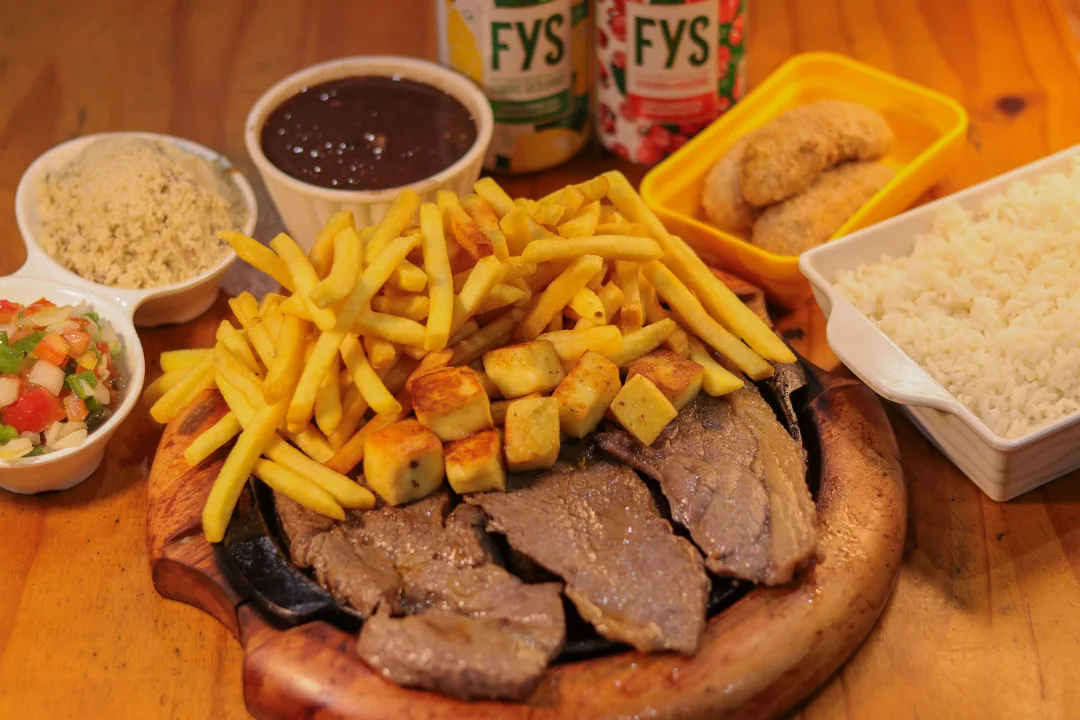 Para 2 Pessoas: 1 Bife de Contra Filé, 1 Bife de Peito De Frango, 1 Linguiça Toscana, 3 Pedaços de Costela De Porco.